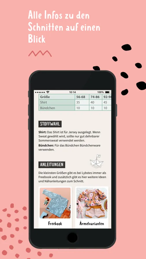 Du hast deine Kreation fertiggestellt und weißt, wie dein nächstes, selbstgenähtes Kleidungsstück aussehen soll? Du hast aber vergessen, wie viel Stoff du überhaupt benötigst? Kein Problem! In der App sind alle Infos zu den Schnitten enthalten. Neben dem Stoffverbrauch kannst du auch nachsehen, welche Stoffarten für welchen Schnitt geeignet sind. Du möchtest etwas Neues ausprobieren oder dich einfach mal inspirieren lassen? Dann stöbere in den Lybstes Nähanleitungen, die wir für dich zusammengetragen haben.