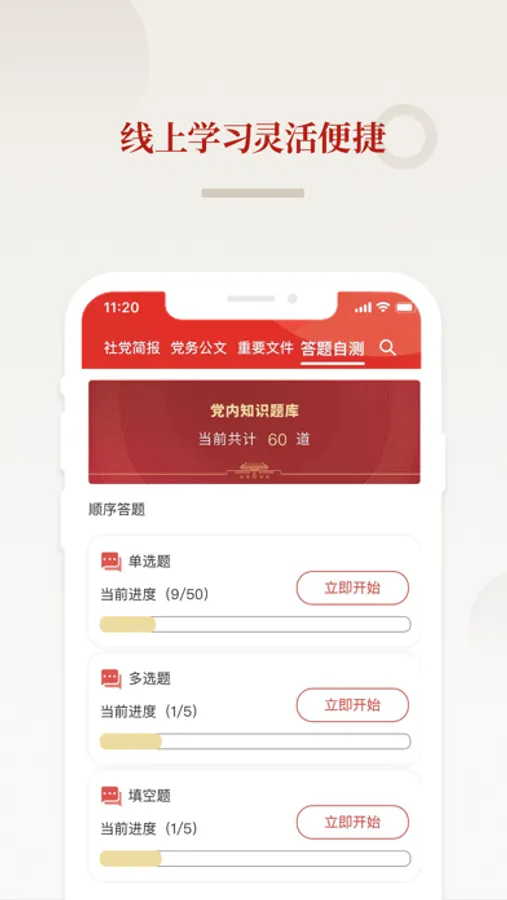 3答题自测:用户对已上传的各类型题目进行线上答题、查看正确答案,并可对已完成题目进行历史记录;