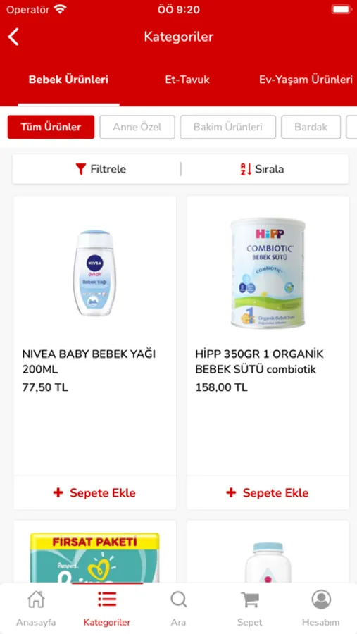 * Ürün kategorilerinde filtreleme yapabilirsiniz