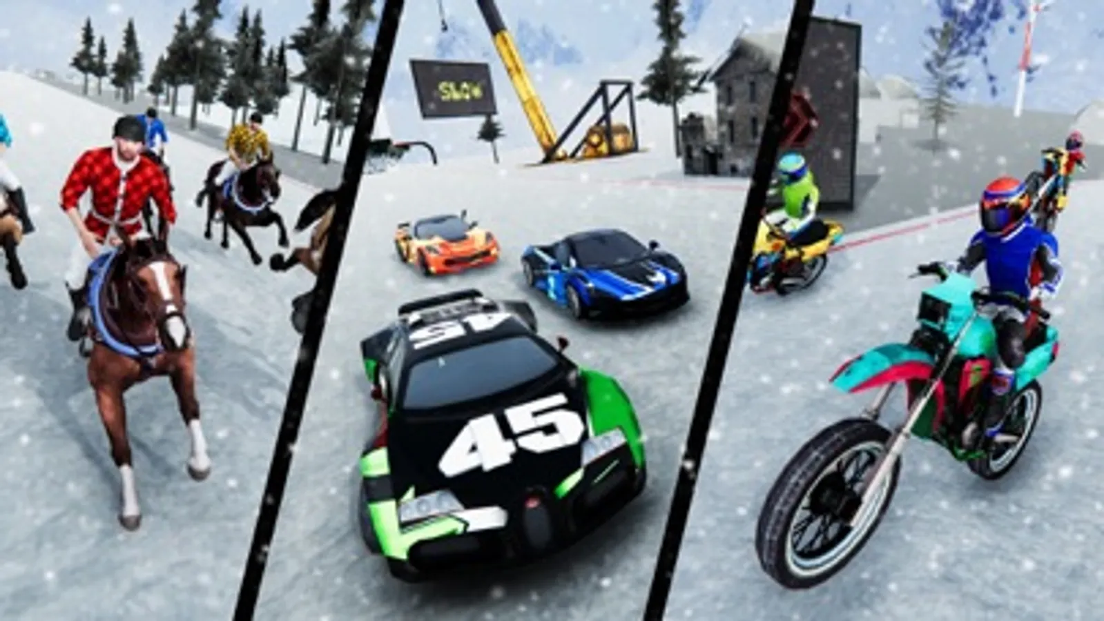 Horse, Cars, Snowmobile and bike racing best winter sports game for you. Get ready to play most adventurous snow racing game. Participate in various winter sports games like horse riding game, snow mobile racing and car racing games and more.