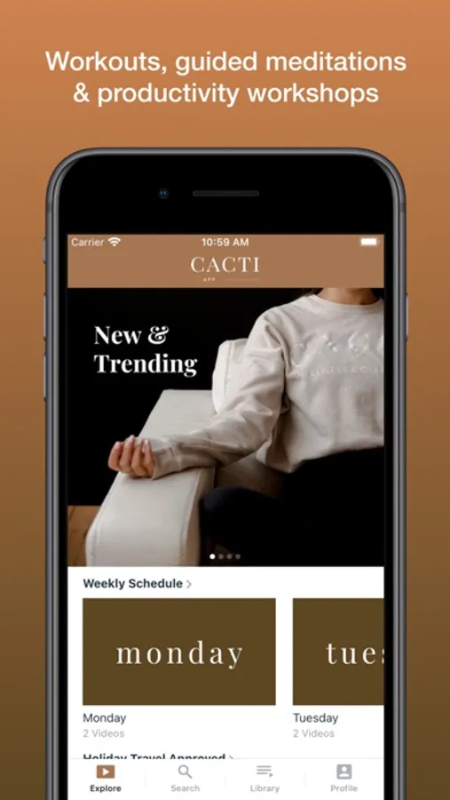 FIT YOUR BUSY SCHEDULE: Cacti was designed with the busy woman in mind. We know you have a jam packed schedule, so we want wellness to be enjoyable & attainable. All of our workouts and meditations are 20-minutes or less so you can fit them into your coffee break!