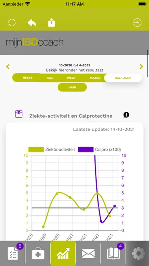 De gegevens die u invoert, levert uw behandelaar informatie op over de ziekte- activiteit en over uw leefstijl en hoe u zich daarbij voelt. Daarmee geeft u zicht op hoe het is om te leven met IBD. Dit contact op afstand levert u en uw behandelaar tijdwinst op. U hoeft bijvoorbeeld minder naar het ziekenhuis. En als u in de spreekkamer zit tegenover uw behandelaar is die al behoorlijk op de hoogte!