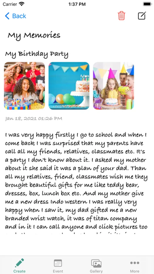 In this hectic world, we forget most things within time. The memory book contains an event planner. It set up a reminder to alert your events such as birthdays, anniversaries, appointments, or any other events. The user receives a notification on the allocated event day. It is also possible to reschedule events if any change occurred.