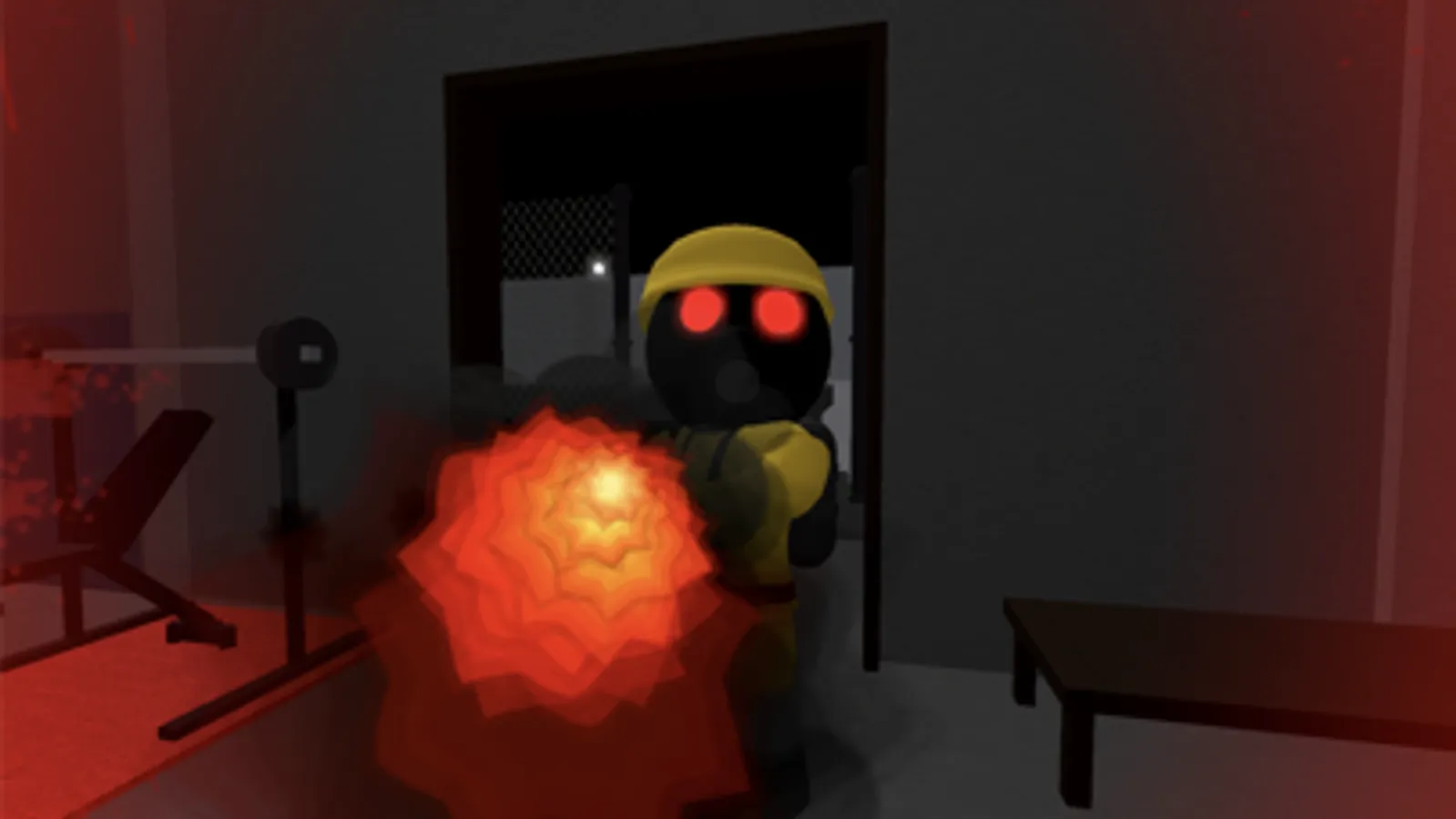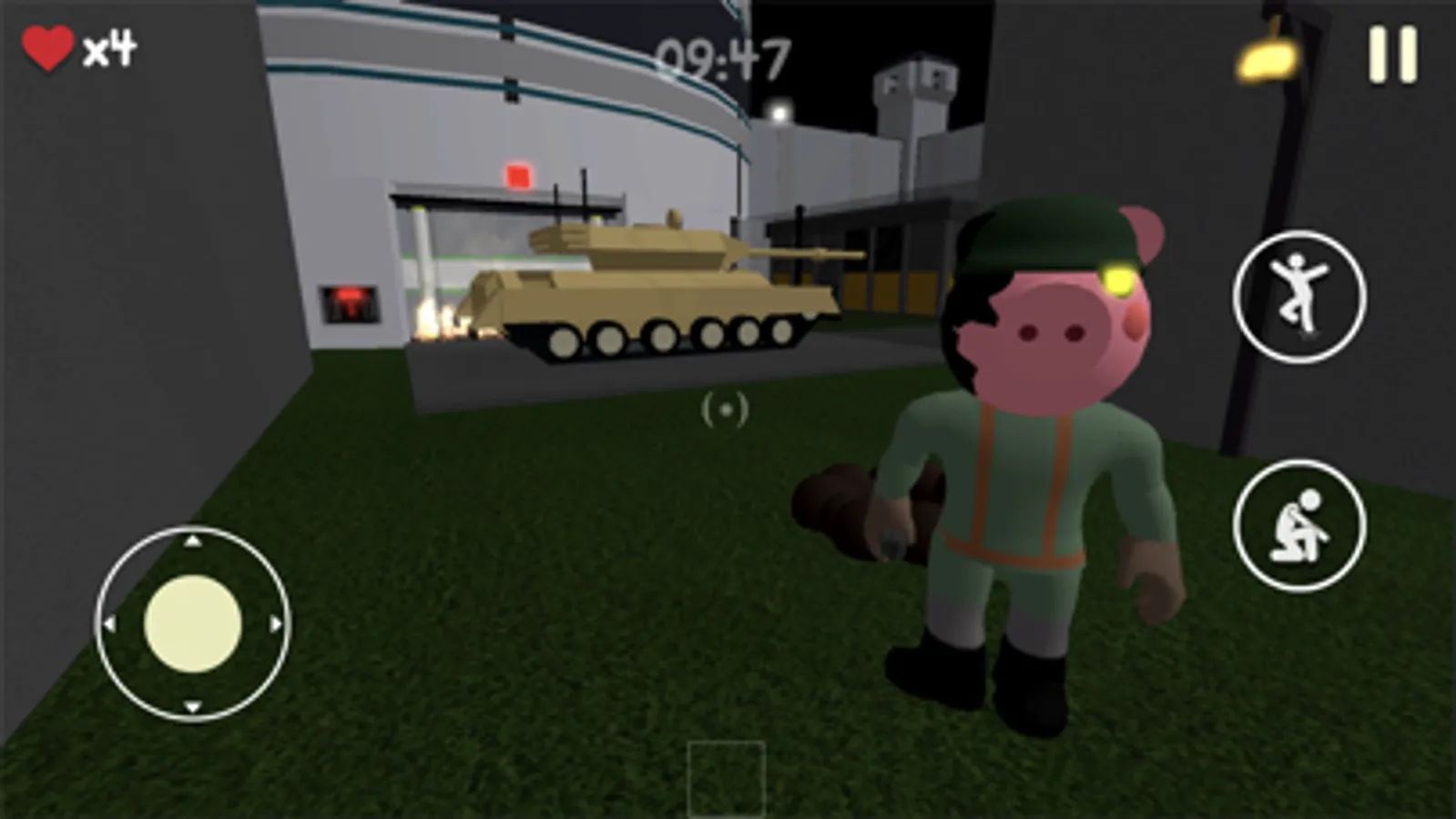The map is like a military training area with a floor level, a small second floor, and also some watchtowers and walls, containing the following facilities: sleeping quarters, a cafeteria, a meeting room, a workout area, a Medibay, Mr. P's base (the escape room), a strategy room, and even a tank. There are also spawn holes from where Soldiers climb out, and they do kill you if touched.