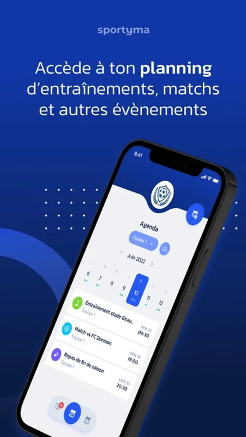 Sportyma a pour objectif d’accélérer le processus de recrutement, faciliter la communication interne ainsi que la mise en relation dans le monde du football. C’est pourquoi Sportyma vous permet d’élargir votre réseau et de rentrer directement en contact avec celui-ci grâce à sa messagerie. Ne ratez plus aucune opportunité et recherchez un nouveau club en un seul clic grâce au système d’annonces. Fini les problèmes d’organisation, vous aurez un accès direct à vos plannings d’entraînement et de matchs, sans oublier la possibilité de communiquer directement avec vos coéquipiers et votre club