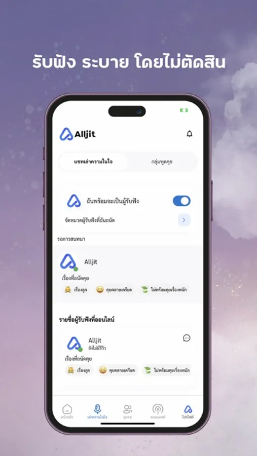 Alljit เพื่อนคู่คิด ที่ปรึกษาปัญหาด้านจิตใจ เปิดอกพูดคุยได้ทุกเรื่องทั้งการเงิน การงาน ครอบครัว ความรัก เราพร้อมรับฟังทุกเรื่อง