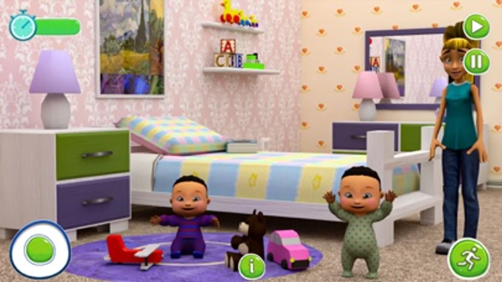 Get Ready for fun Babysitting of Twin babies. Pregnant mother is being blessed by twins and now she is finding baby sitter to give her kids some mother care love and attention. Dig in! This is your responsibility. In this Simulator you have to take care of the cutest baby twins ever! They’re a so full of trouble & fun! Have some fun time with them.