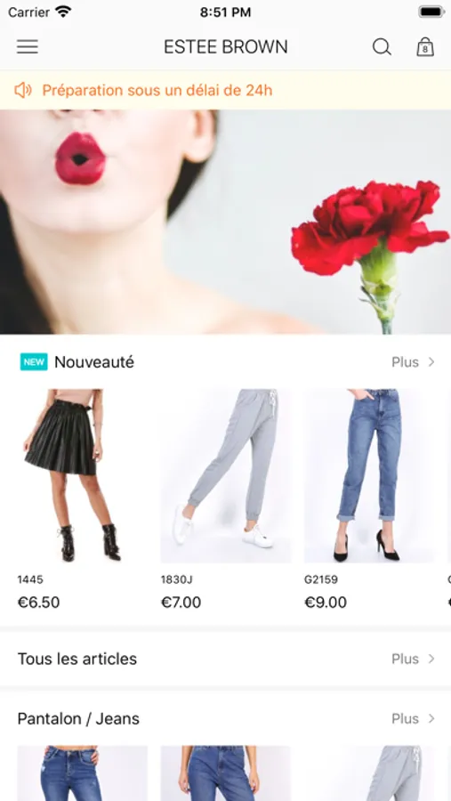 L'application ESTEE BROWN est notre outil de visualisation et de commande en ligne destiné aux clients professionnels de la mode. Les clients peuvent nous envoyer une autorisation d'accès dans l'application. Après la validation de cette demande, ils pourront visualiser et commander à distance tous les articles de notre boutique en ligne.