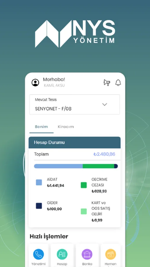 • Banka Bilgileri; Site Yönetimine ait banka hesap bilgilerini görüntüleyebilme.