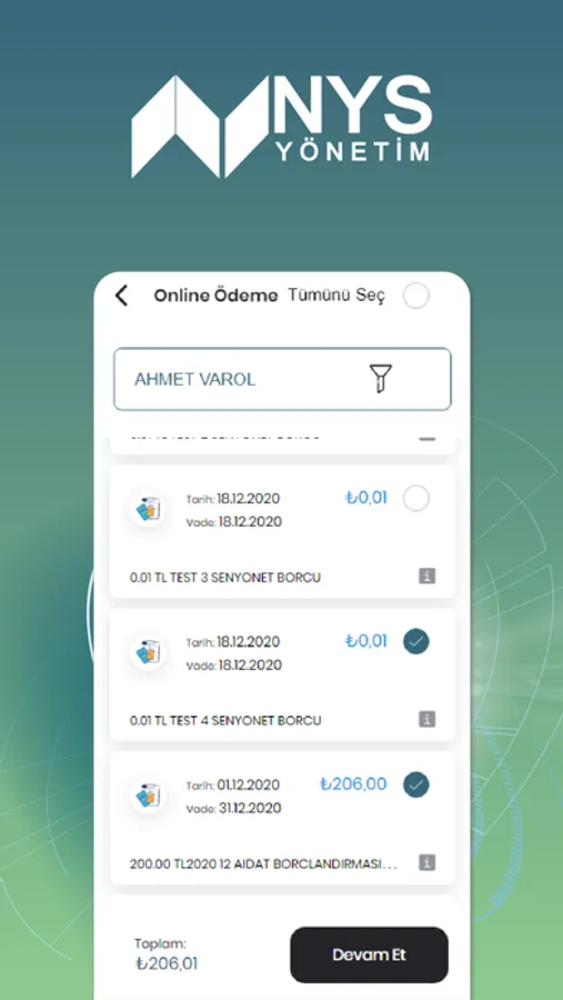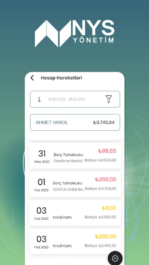 • Cari Hesap Hareketleri; bölümünüze yapılan tahakkukları , güncel borç durumunu ve geçmiş dönemde gerçekleşen ödemelerinizi görüntüleme,