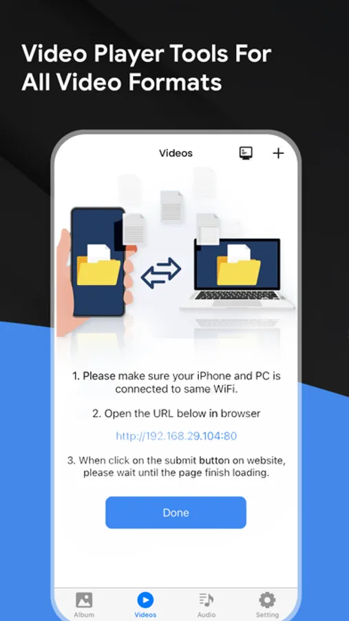 MX Player allows file synchronisation with your computer(iTunes), iCloud Drive.