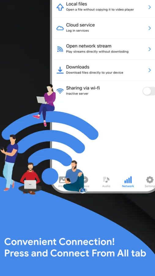 - Video Player – Sharing Wi-Fi feature (wireless file transfer)