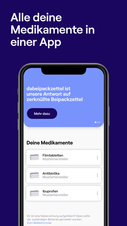 dabeipackzettel ist die erste App, mit der du per Fingertipp an alle wichtigen Infos zu deinen Medikamenten kommst. Schnell, einfach und auch offline immer dabei.