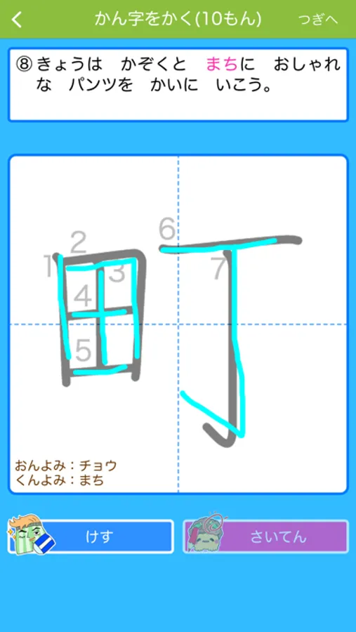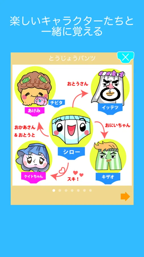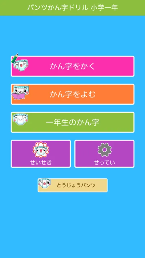 全ての問題に”パンツ”が入っていて、子供が楽しみながら学習できる漢字アプリです。
