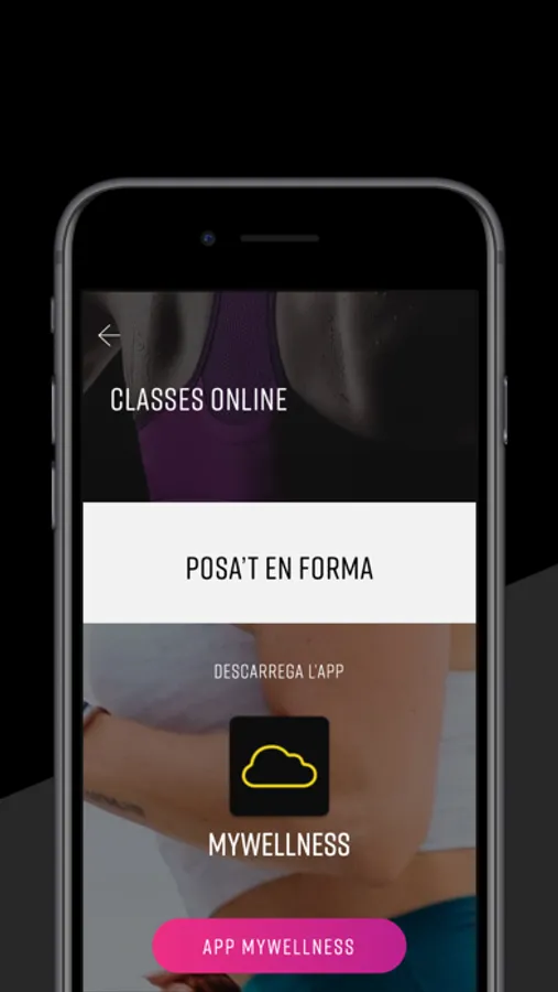 Classes online: Aquí podràs seguir les classes dirigides presencials online amb MY WELLNESS. També podràs veure tot tipus de vídeos perquè puguis fer exercici des d'on vulguis amb el teus instructors favorits.