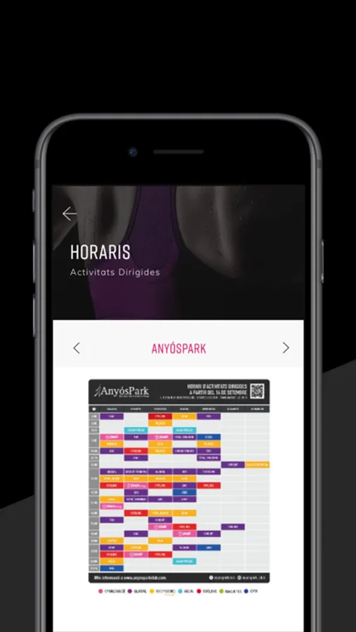 Horari: Aquí podràs veure totes les activitats dirigides que es fa als centres esportius perquè puguis programar-te per venir a la que mes t'agradi.