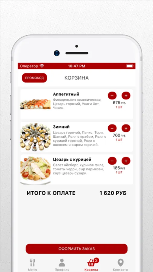 Доставляем бесплатно и быстро, в приложении удобно отследить статус заказа. Также вы легко можете повторить заказ в один клик и сохранить адреса доставок.