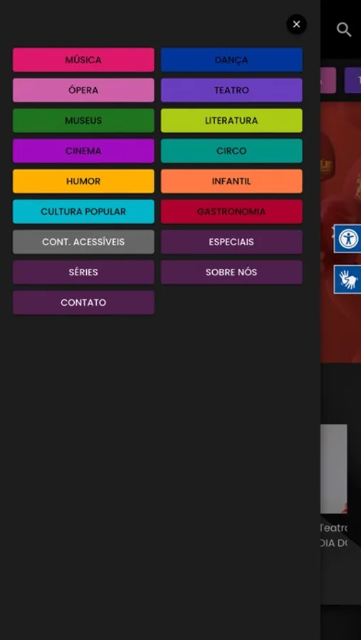 O nosso conteúdo está organizado nas categorias: música, dança, teatro, ópera, cinema, cultura popular, gastronomia, dentre outros; e ainda contamos com um vasto portfólio de conteúdos acessíveis e infantis.