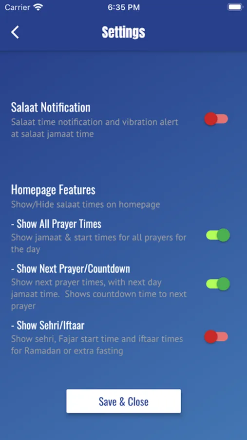 - Daily salat times