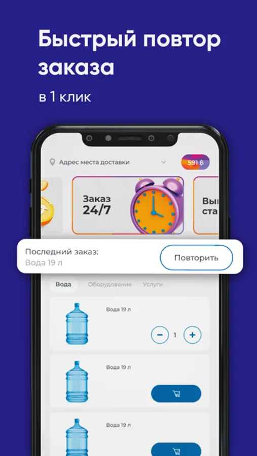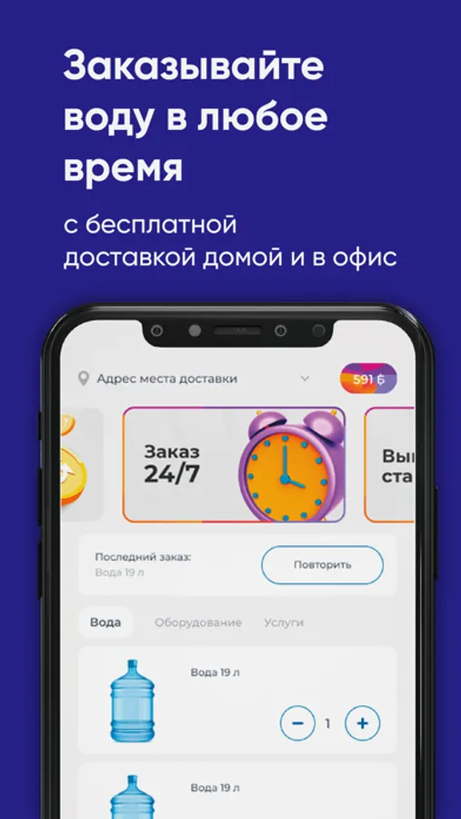 Скачайте бесплатное приложение на телефон и заказывайте чистую воду в удобное время!