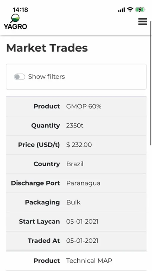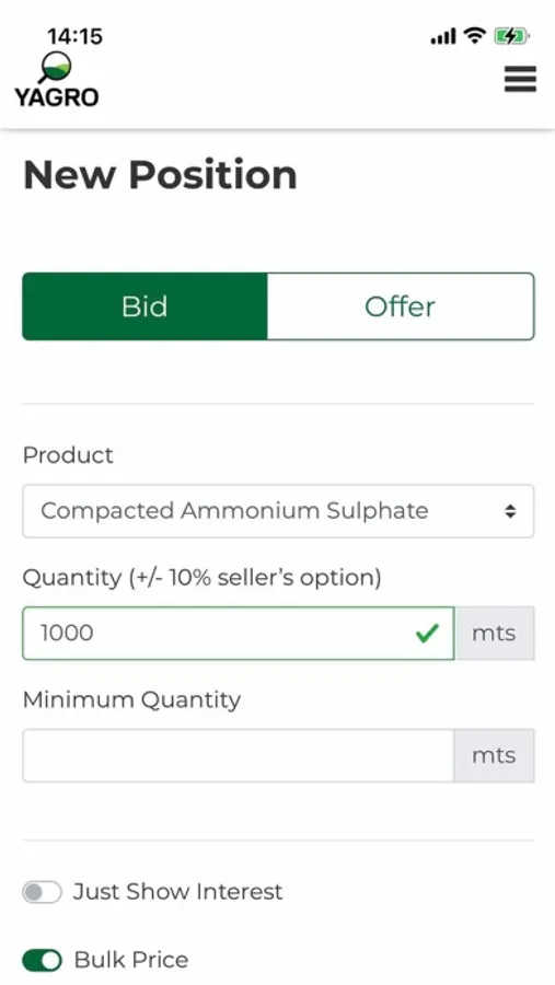 YAGRO Trading is an international agricultural trading platform for fertiliser products. We connect buyers and sellers worldwide on a real-time, anonymous and easy to use platform with daily bids and offers being launched for a variety of products.