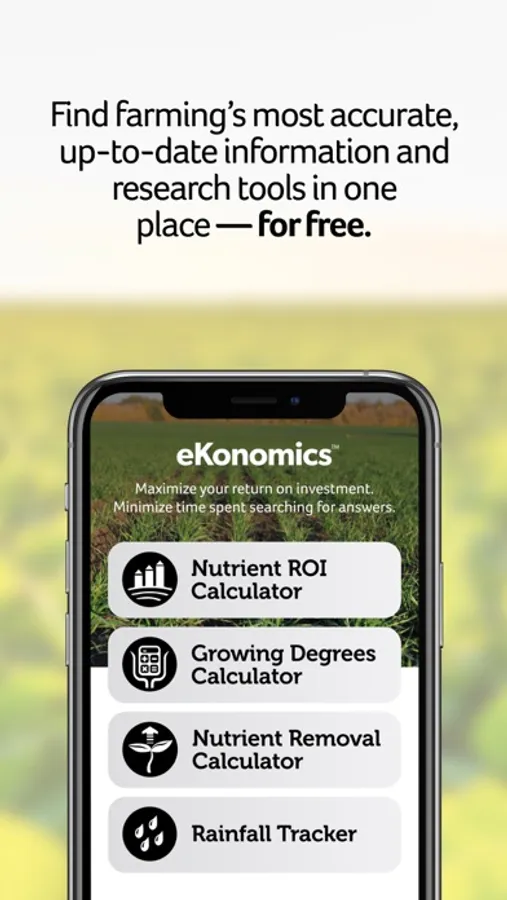 The eKonomics app puts farming’s go-to information resource in the palm of your hand. Access the most accurate information and research tools from anywhere at any time. The eKonomics app was designed to help maximize your farming investments and give you better insight over your nutrient management. Along with the powerful ROI calculators and tools, the app gives you easy access to commodity prices and the new “Ask an Agronomist” feature.