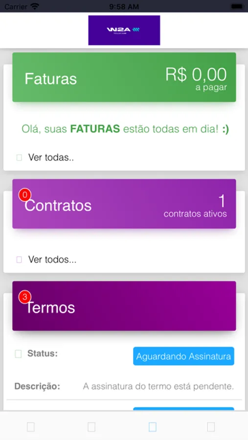 Um aplicativo para você consultar suas faturas, assinar seu contrato e desbloquear seu acesso a um clique!