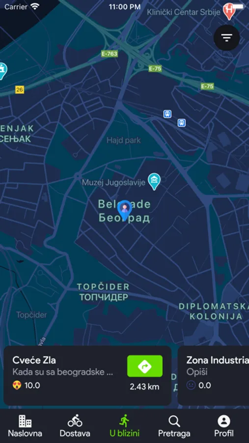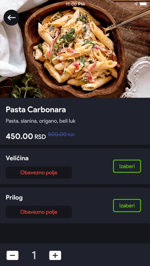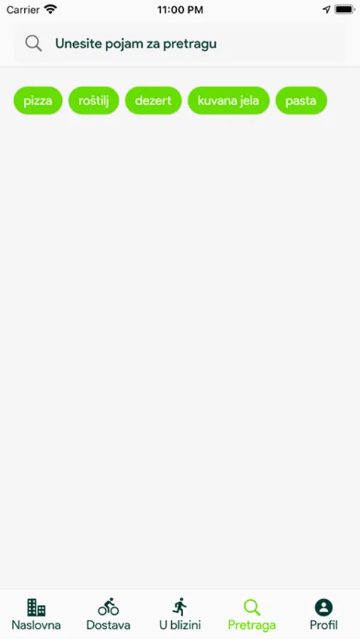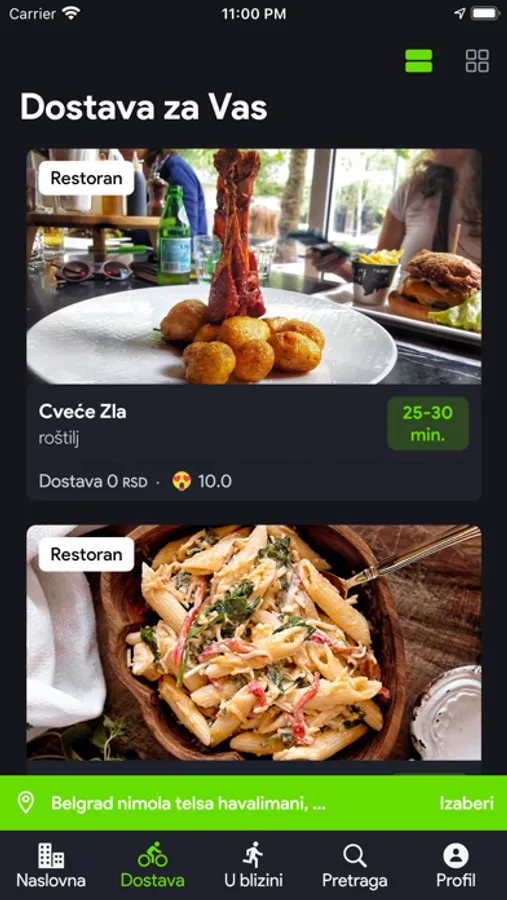 Inicijalna verzija Little Bag mobilne aplikacije za dostavu hrane.