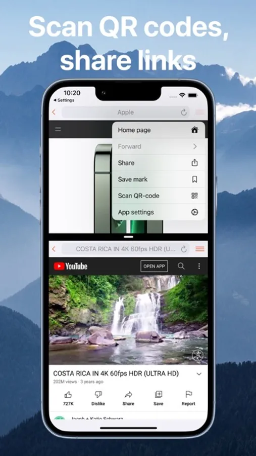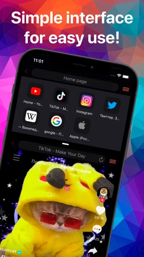Splitting the browser screen will allow you to use several sites at once. Watch videos and communicate on social networks, combine sites for your tasks!