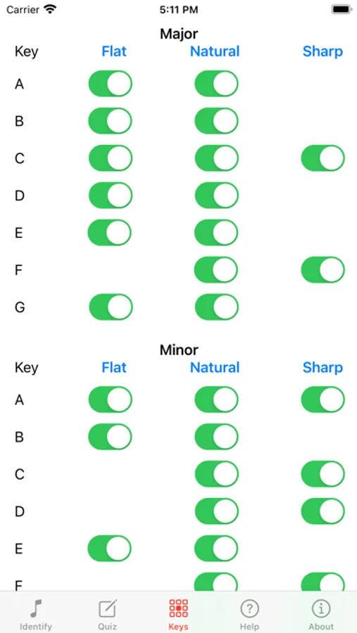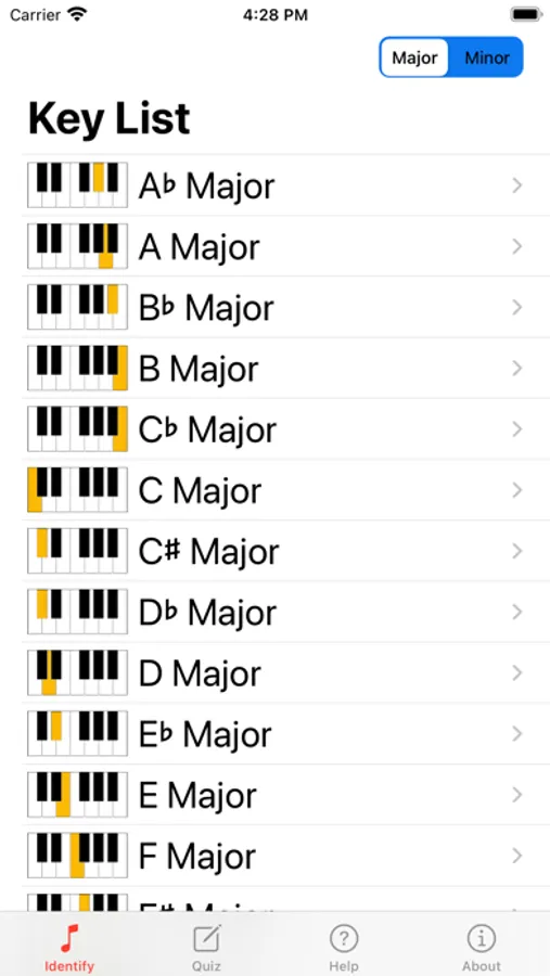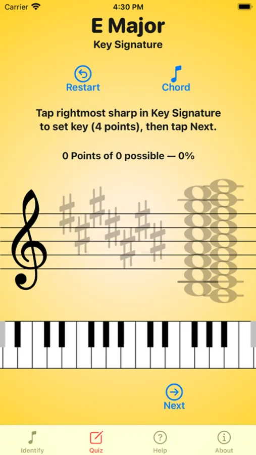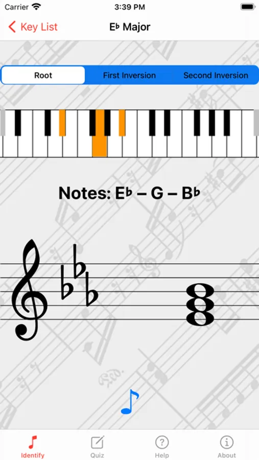 Use the Quiz tab to build your mastery of the notes for all the major and minor chords and inversions. Your Quiz tab score tracks your progress and makes the learning more fun.