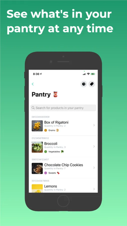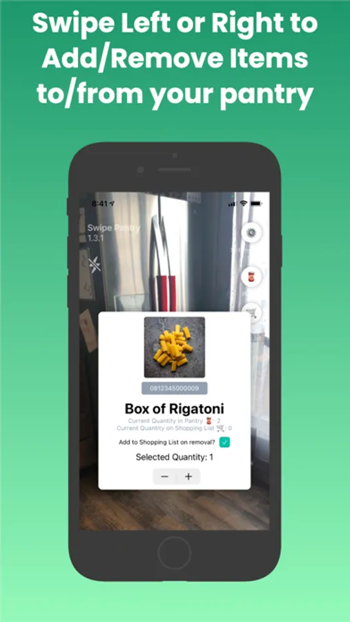 Swipe Pantry uses your phone's camera as a barcode scanner to detect unique UPC codes for your household goods. You can manage your scanned items by selecting an image and adding your own description to identify and manage your household goods.