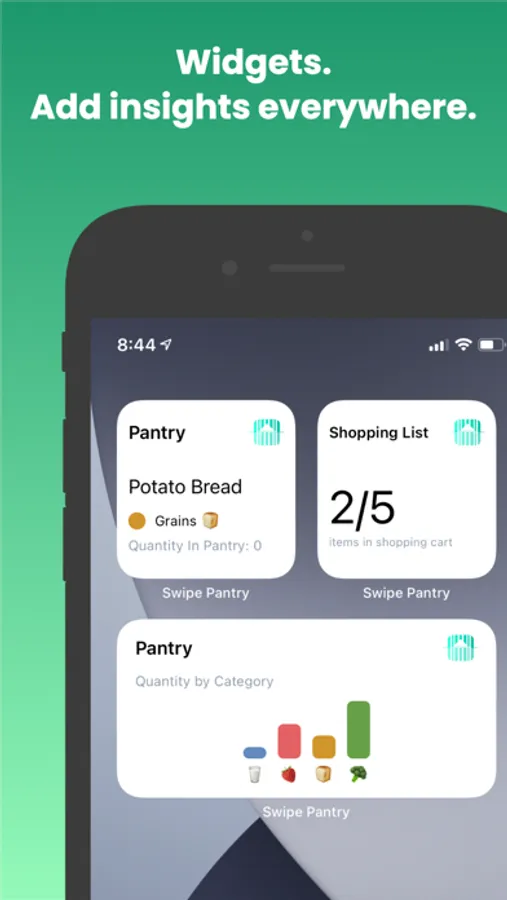 Add widgets to your home screen to track various insights on your pantry.