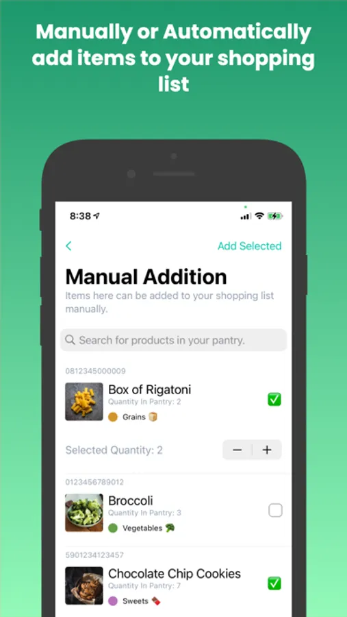Create shopping lists with the items in your pantry, when the item quantity of your pantry changes, you can optionally choose to automatically add items to your current shopping list to make your next grocery store trip easier.