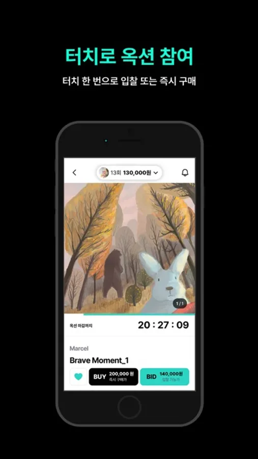 터치 한 번으로 입찰할 수 있는 모바일 옥션으로
