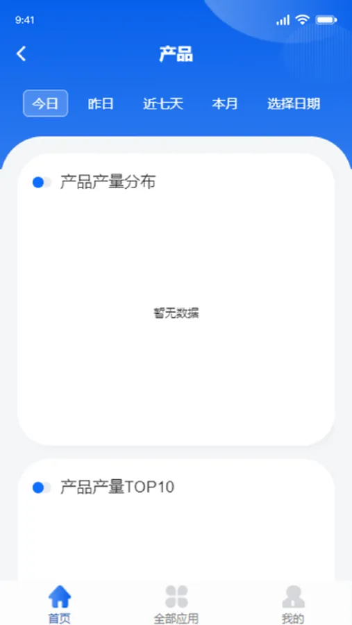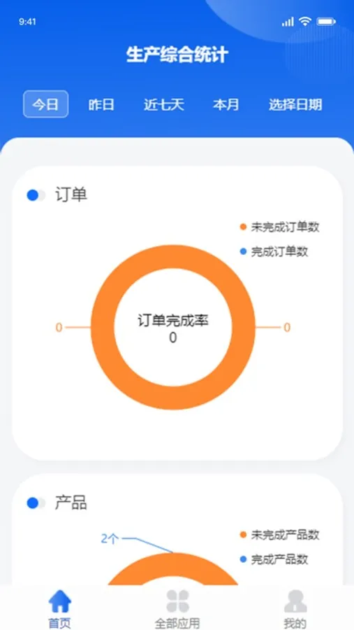 1、生产首页:不同维度的生产绩效统计,直观了解计划和产品数据。