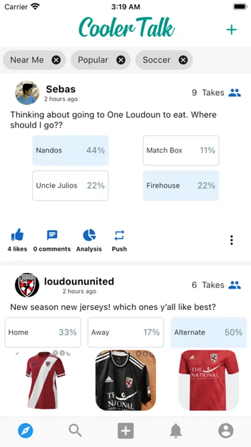 * Post away on CoolerTalk with poll or standard formats. Add topic tags, pictures, and tag friends along the way