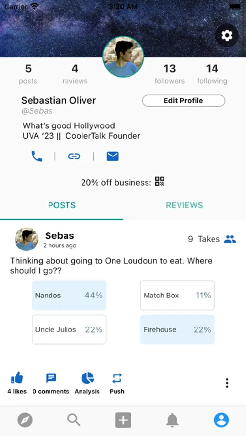 * Take advantage of a coupon wallet of all loyalty rewards of accounts you follow. Redeemable by QR code scan