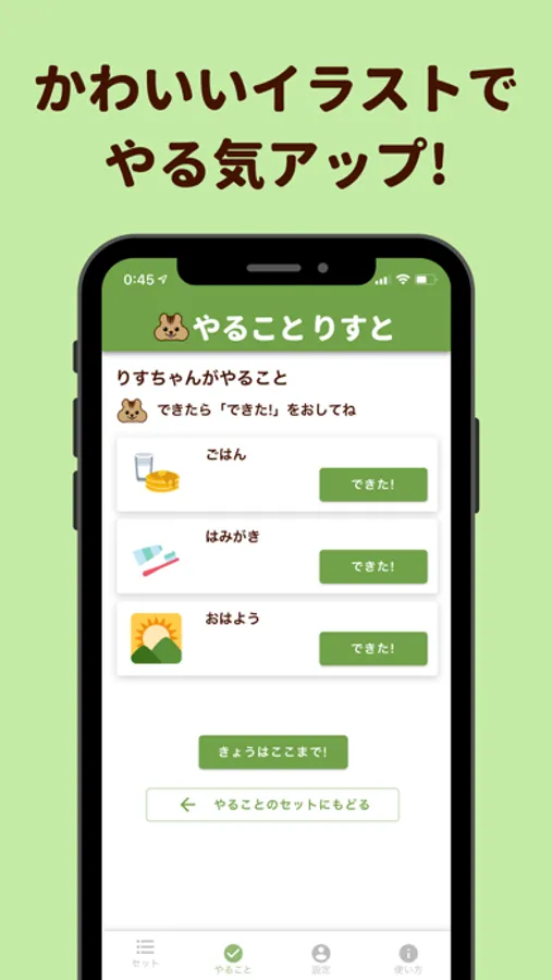 イラストで直感的にやることがわかり、毎日繰り返し使うことでタスク管理の習慣が身に付きます。