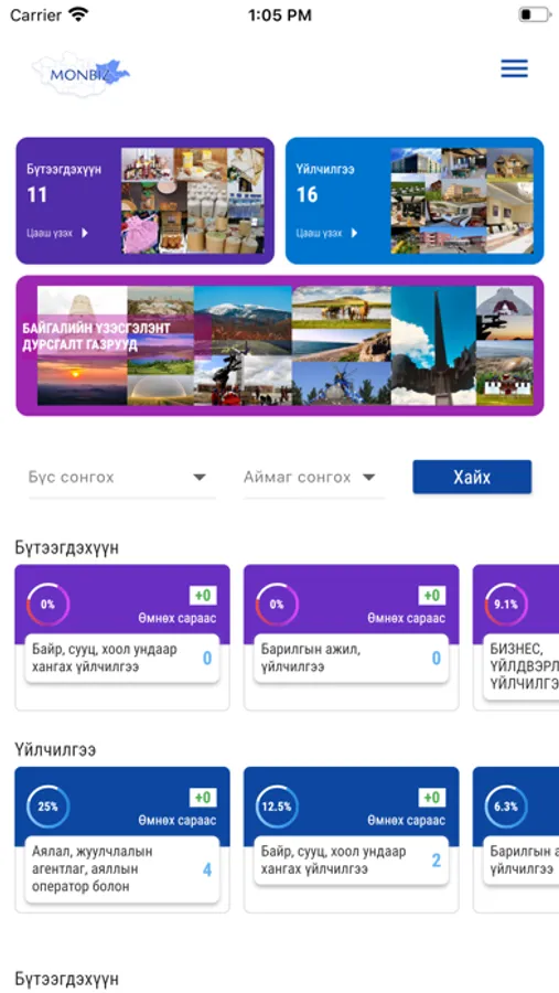The “MonBiz” system is web-based dynamic software, developed within the framework of Mongolian Government Policy to support rural private business expansion, development and capacity building of rural-based private sector. Asian Development Bank financially supported development of the system. It contains information of micro, small and medium-sized enterprises from the country’s rural areas. The catalogue system enables the effective information sharing and marketing mechanisms between central/local governments and private enterprises, and encourages local governments to rationalize the investment and private sector development operations, and optimize the use of their limited economic resources. By the use of “MonBiz”, general public and users can effectively and easily reach vast pool of local products and services produced in rural areas.