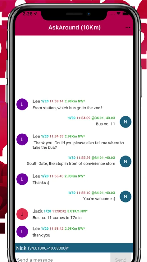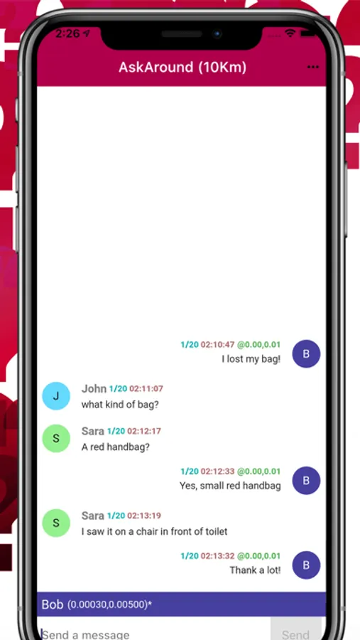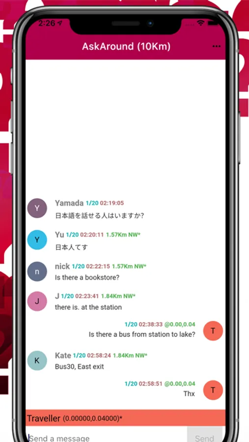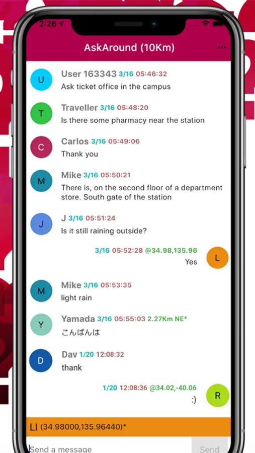 With this app, you can chat with and ask questions to people nearby without revealing your identity. There is no need to log in.