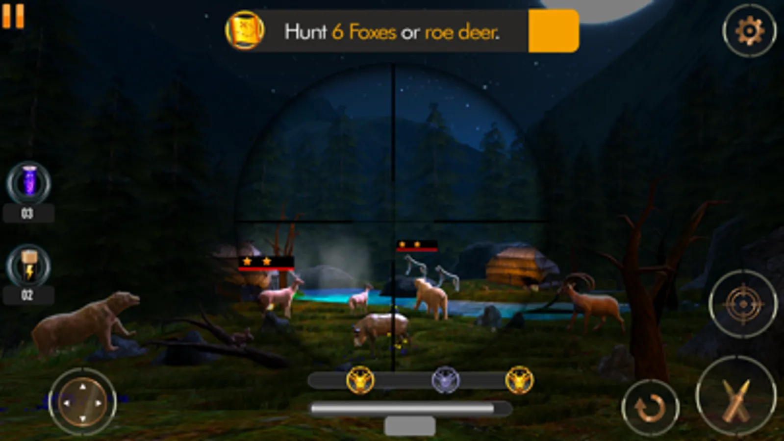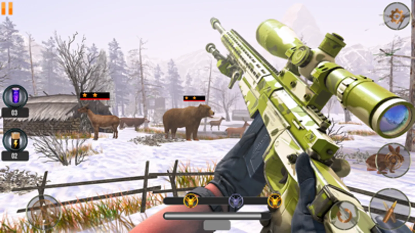Wild hunter is standing in the open jungle. The animals are appearing before him at different times. Birds might be appearing at random in the sky. The number of prey has also increased. Only skilful hunting will help you score more. Sitting at great distance, the sniper shooting of gun is an amazing thing.