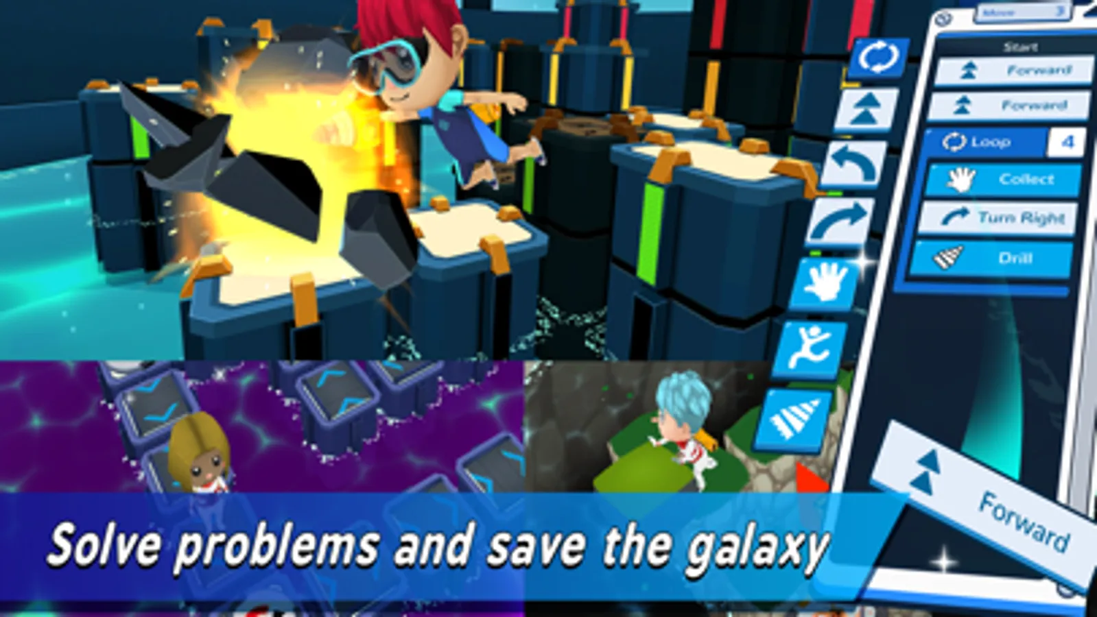 As a member of the Galaxy Union, you are tasked with saving the polluted planets by solving block-coding puzzles. An exciting adventure awaits!