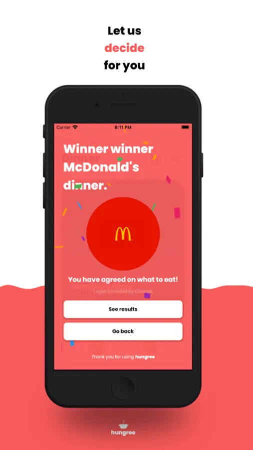 Hungree is a fun and easy way to decide what to eat with your friends!