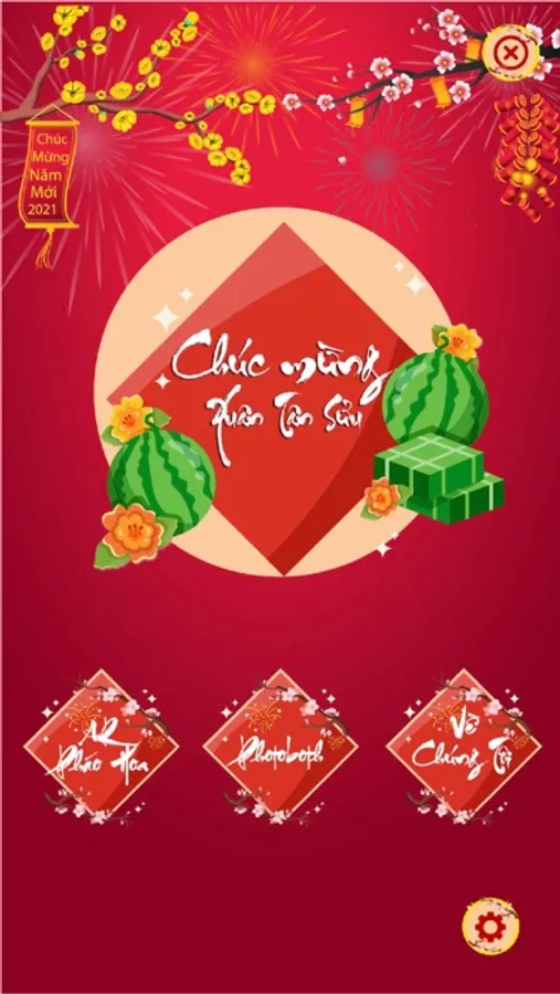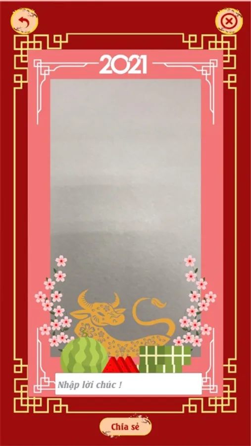 Trong ứng dụng còn có kèm chụp ảnh với khung nền tết, sau khi chụp ảnh có thể chia sẻ lời chúc và hình ảnh đó đến mọi người.
