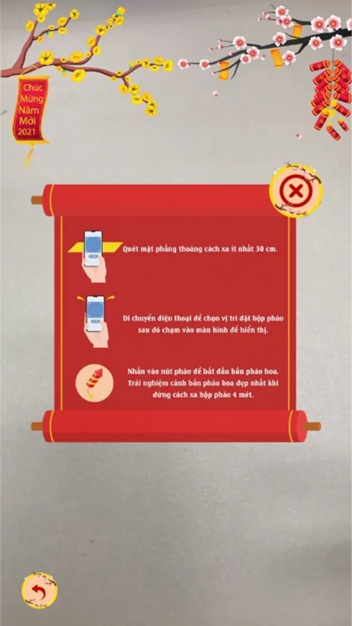 Ứng dụng AR pháo hoa, có thể tự chọn vị trí đặt hộp pháo, sau đó xem trình diễn pháo hoa với các bản nhạc tự chọn trong phần cài đặt. Có thể chụp ảnh và chia sẻ khoảnh đó cho mọi người.