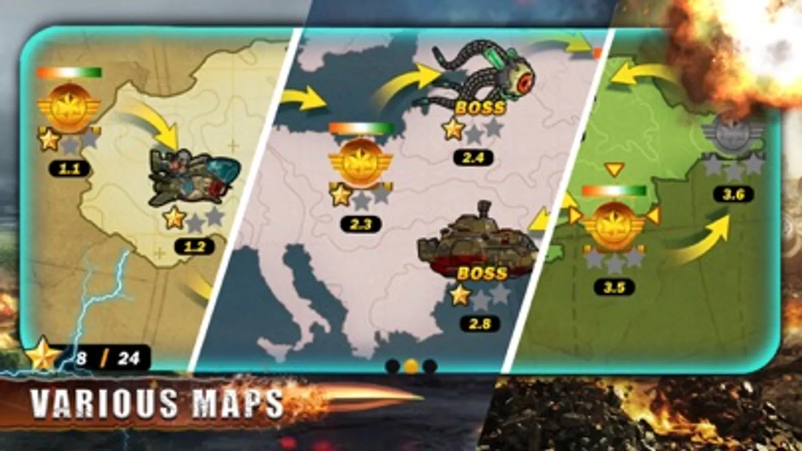 • Powers include Airstrike, Shield, Increasing health