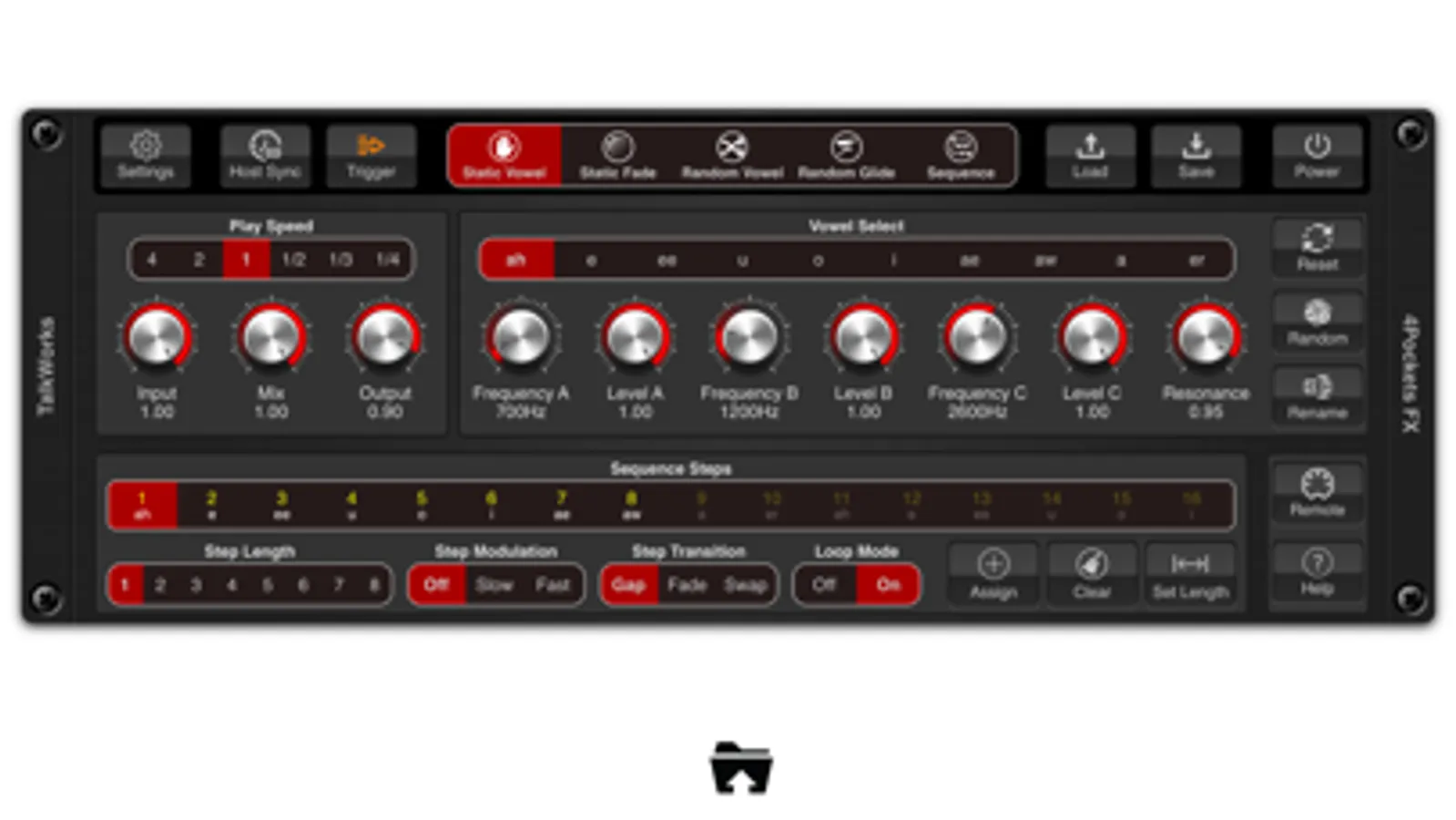 You can fully customize up to 10 vowels sounds to your liking, then use one of 5 play modes to add dynamics and movement to your sound. You can randomly switch between vowels in one of several ways, either abruptly or using smooth fades, and control the speed of the movement.