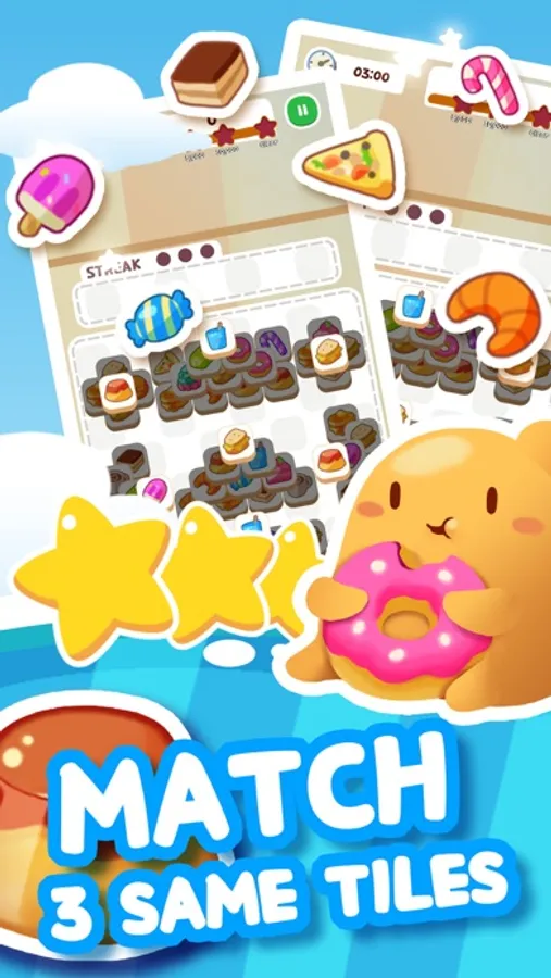 - Tap three of the same tiles in a row to get a Streak for bonus points.