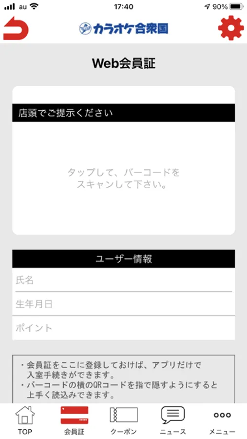 アプリで読み込んだ、バーコードを会員証としてご利用いただけます。