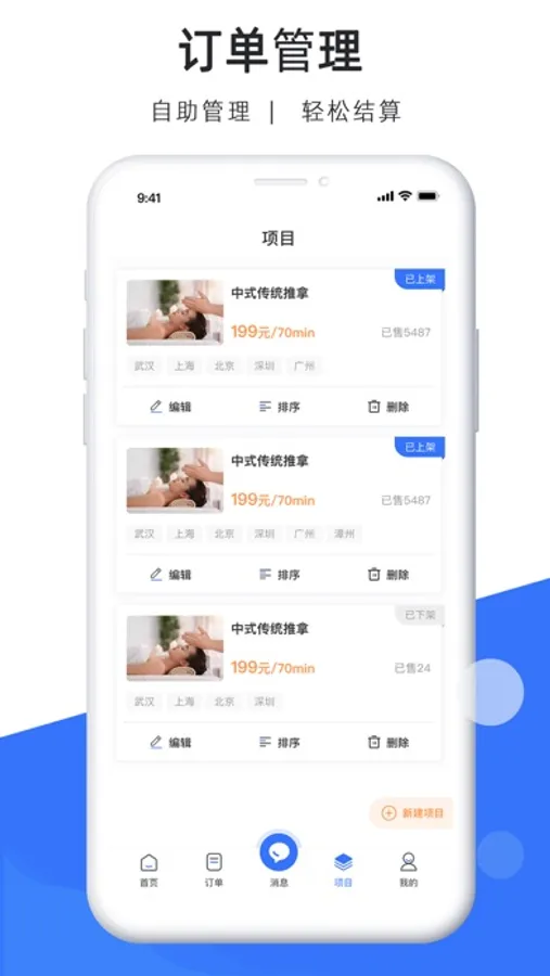 芭乐商家端为用户提供生活服务类上门与到店服务,1.0阶段为用户提供全品类上门推拿服务,芭乐商家端致力于推动生活服务行业产业升级与价值重构,为服务行业及产业链上下游客户提供商业数字化服务,提升企业经营效率和服务能力。 通过系统工具进行用户管理、技师管理,用更加科学的方法优化 管理流程,让IT技术真正的为我 们服务。 帮助传统行业解决用户获取和客 户留存问题,通过大数据分析了 解用户喜好,满足用户下单需求, 提高下单率。 通过芭乐商家端给商家提供有效的 运营方法手段,帮助企业实现高 速增长。